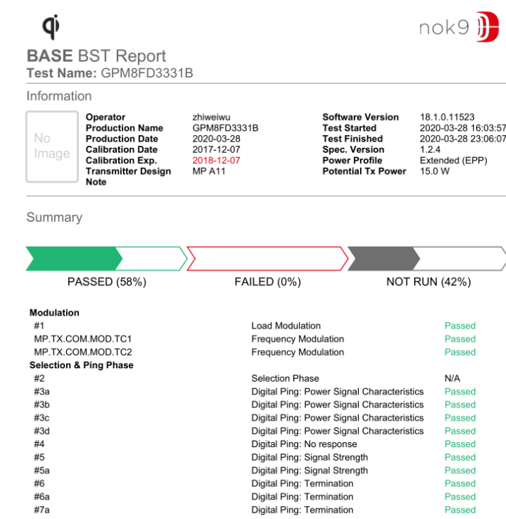 Qi认证,EPP协议已在实验室完成重要项目的预扫动作,保障后面客户正式做Qi EPP认证没有问题。