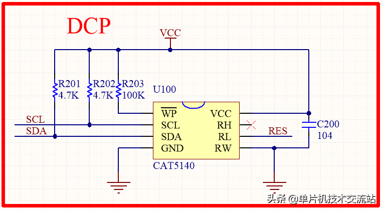 根据描述,可以得出如下线路图,SCL和SDA接单片机IIC通讯口即可。