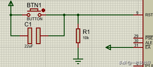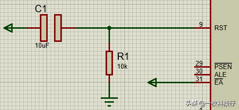 RST:第9脚,复位信号输入端,高电平有效。复位端口的硬件解法有两种,一种是上电复位,一种是按键复位,在不同的场景有不同的选择。