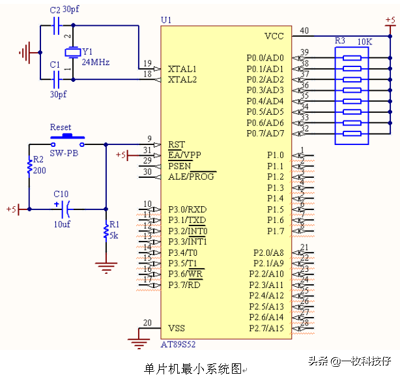 51单片机的最小系统其实很简单,下面依次介绍其中的引脚作用。