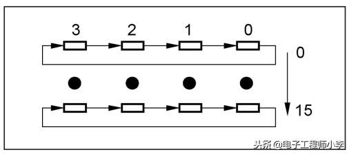 现在回到16×16LED点阵屏,我们的任务是在这块方寸之地显示一个汉字,而且要能上下、左右地滚动,首先要解决的问题就是如何存放这256个汉字笔画像素的信息。