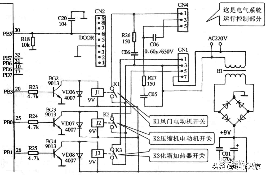 冰箱有强制对流风扇及单片机控制电路的电气系统分析