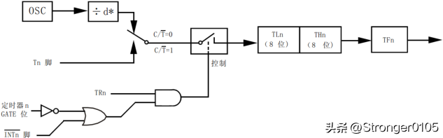 1.如果要让定时器0工作,那么 TR0 就必须置 1,及与门另一输入为1。