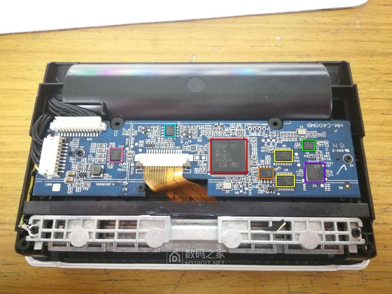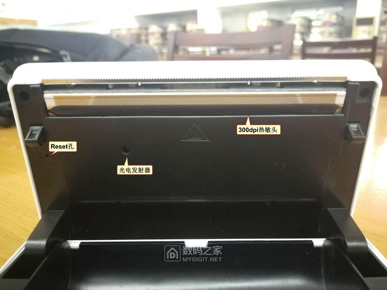 顶面(B面?),有一个300dpi的热敏头,复位孔,光电发射器