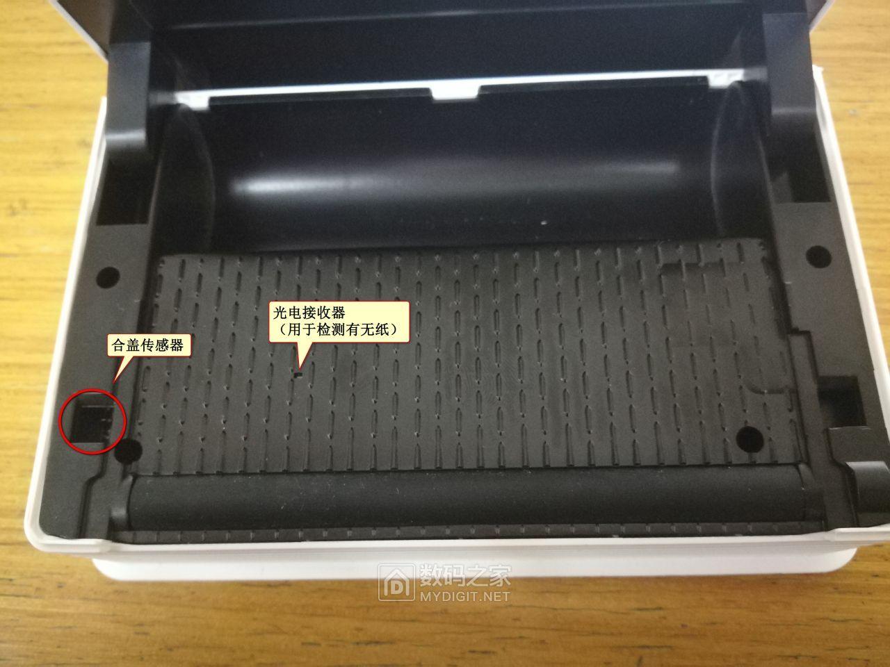 开盖后的底面(C面?),有合盖感应器,光电接收器(用于检测有纸无纸)