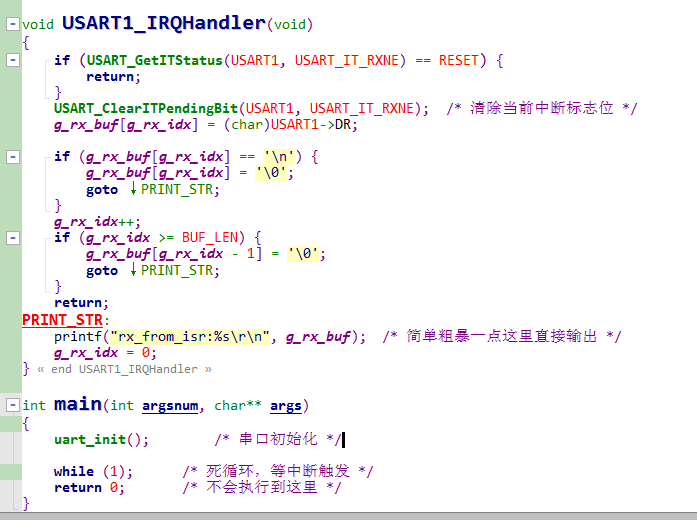 串口接收中断简单测试代码主逻辑
