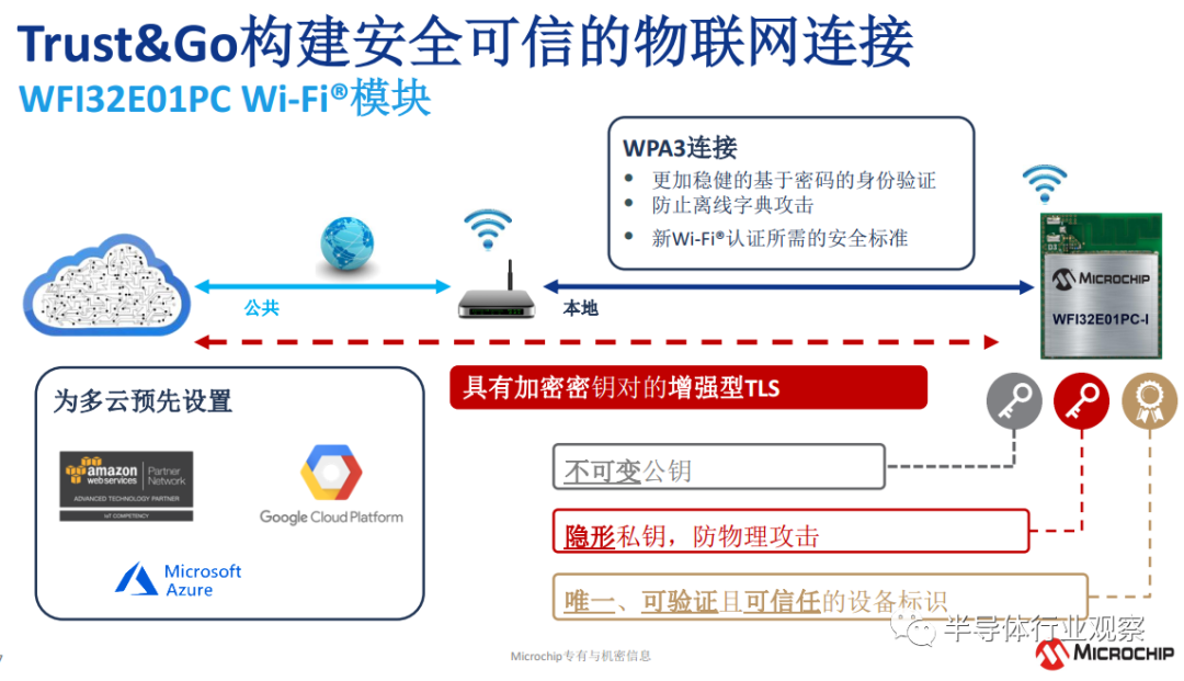 来到安全和可靠方面。除了上文谈到的Trust&Go外,Microchip通过还为这款产品的软件引入了WPA3连接支持和连接硬件加密加速器TLS,提升了身份验证的稳定以及防止了一些离线的字典攻击。