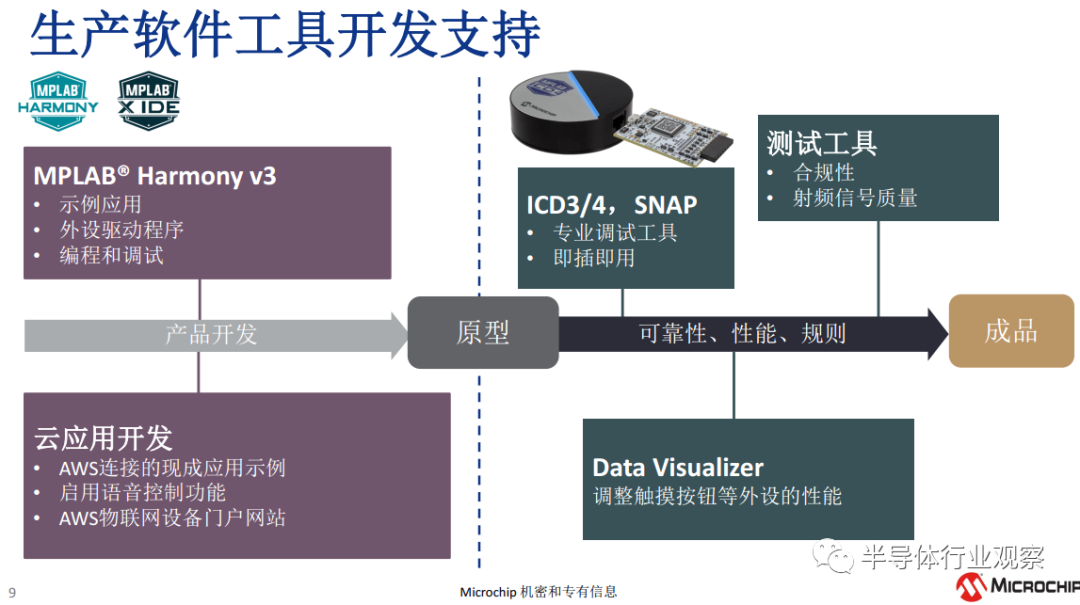 Microchip还为客户提供了如ICD3、ICD4和SNAP之类的专业调试工具,针对射频产品,他们还将提供测试工具,确保其设计的产品符合规范。