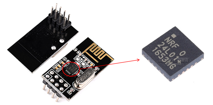 这是一个NRF24L01模块,如图1,它是一款2.4GHz的无线收发一体模块,我们使用它来实现单片机之间的无线通信。这个模块的核心元器件就是中间的这颗NRF24L01芯片,这颗芯片是欧美品牌,而外围模块则是中国制造。