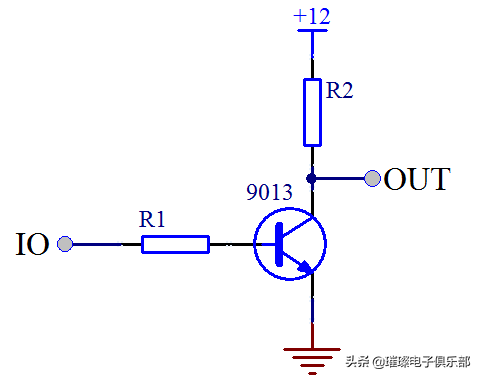 图 3-8 中,当 IO 口输出高电平 5V 时,三极管导通,OUT 输出低电平 0V,当 IO 口输出低电平时,三极管截止,OUT 则由于上拉电阻 R2 的作用而输出 12V 的高电平,这样就实现了低电压控制高电压的工作原理。