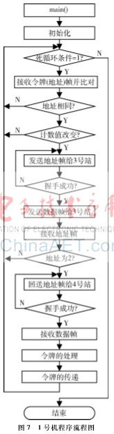 主机的程序流程图如图3所示,1、2号从机的程序流程图如图4所示。