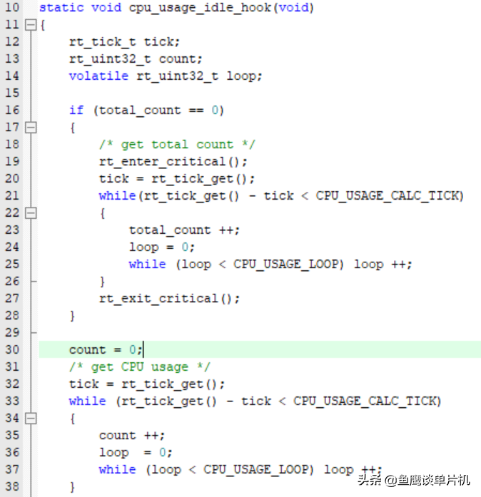 total_count这个值表现了单片机全速运行下,所能达到的最大值。所谓全速运行,即不响应中断,也不去执行其他任务 ,就单纯让它在一个地方持续运行一段时间,这个值可以体现CPU的算力有多大。