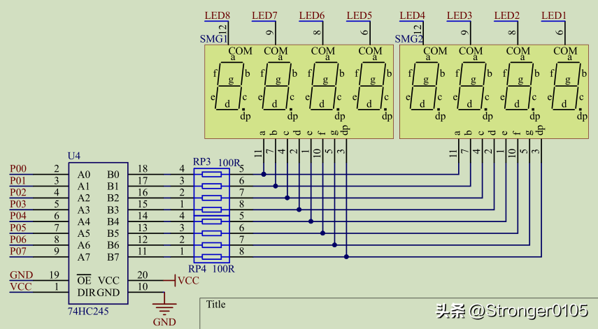 数码管阳极接到P0口,原理图如下: