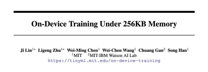 On-Device Training under 256KB Memory 说到神经网络训练,大家的第一印象都是 GPU + 服务器 + 云平台。传统的训练由于其巨大的内存开销,往往是云端进行训练而边缘平台仅负责推理。然而,这样的设计使得 AI 模型很难适应新的数据:毕竟现实世界是一个动态的,变化的,发展的场景,一次训练怎么能覆盖所有场景呢?