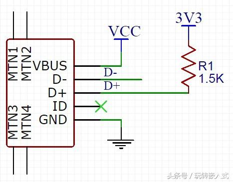 所以,你会看到,STM32F103的USB接口电路,是这个样子的…