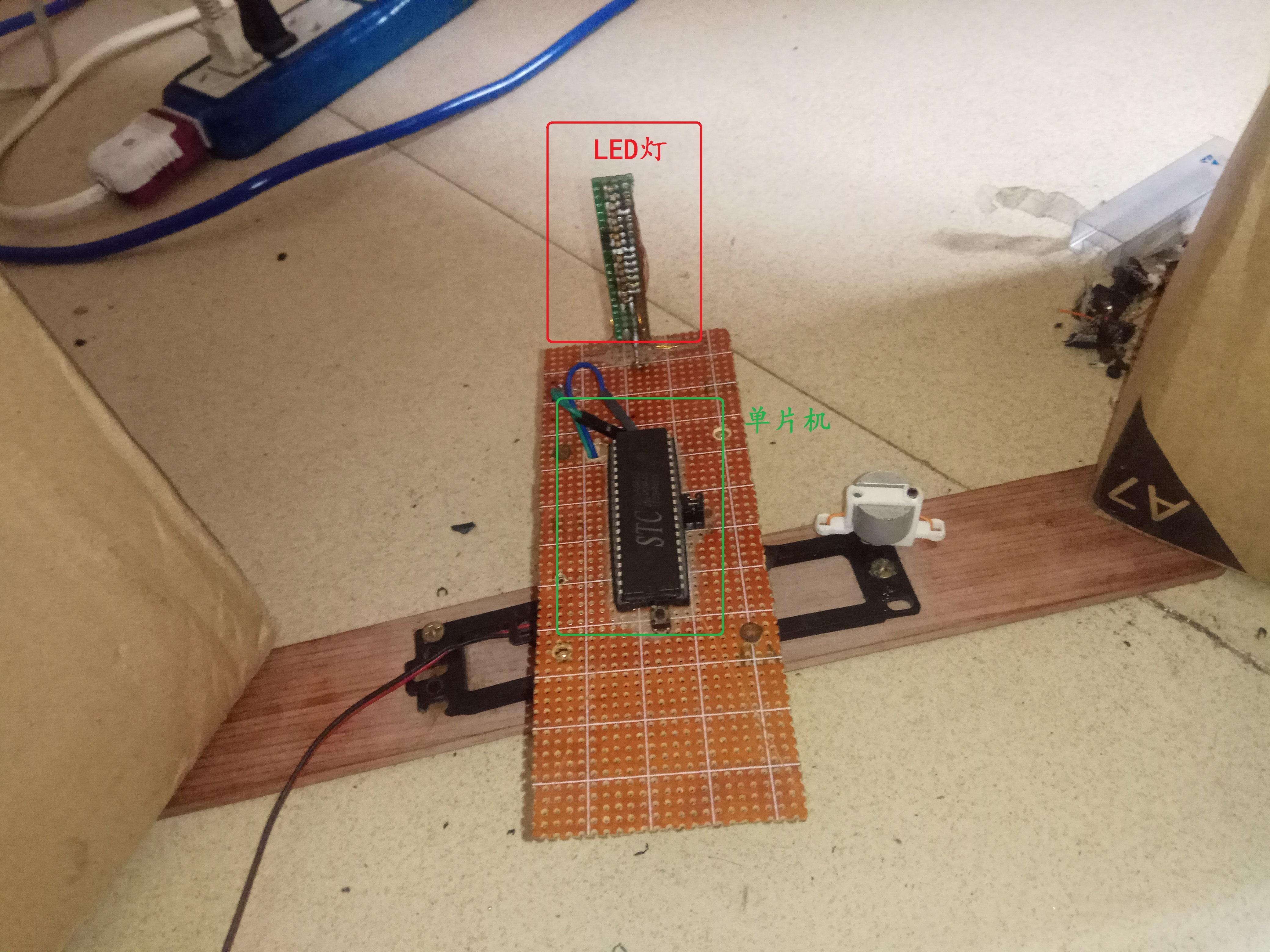 另外,在无线供电电路板和旋转电路板之间安装一对红外光电传感器,将电路板的位置状态送到单片机的外部中断请求输入端,用以对显示内容进行定位。