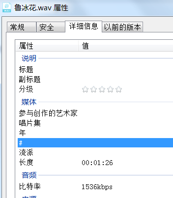 MP3文件的属性显示比特率128kbps