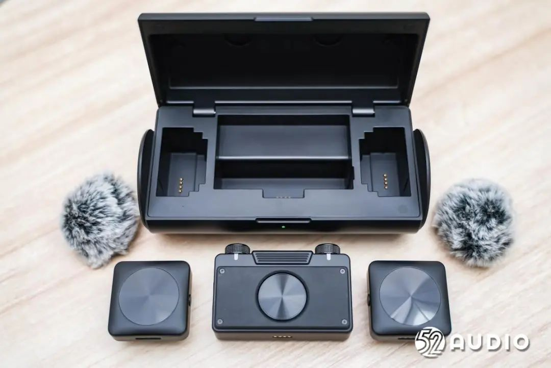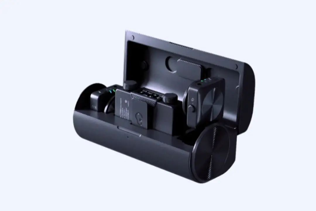 续航方面,发射器支持5.5小时录制,接收器支持9小时录制,充电盒可为发射器和接收器补充约1.3次的续航。