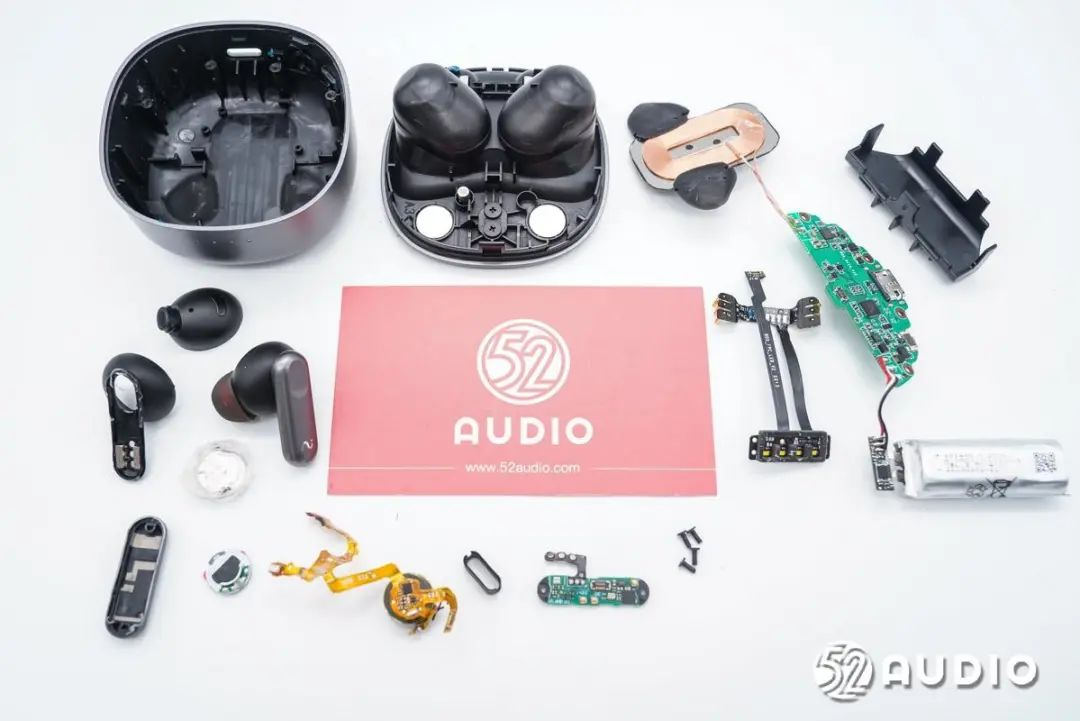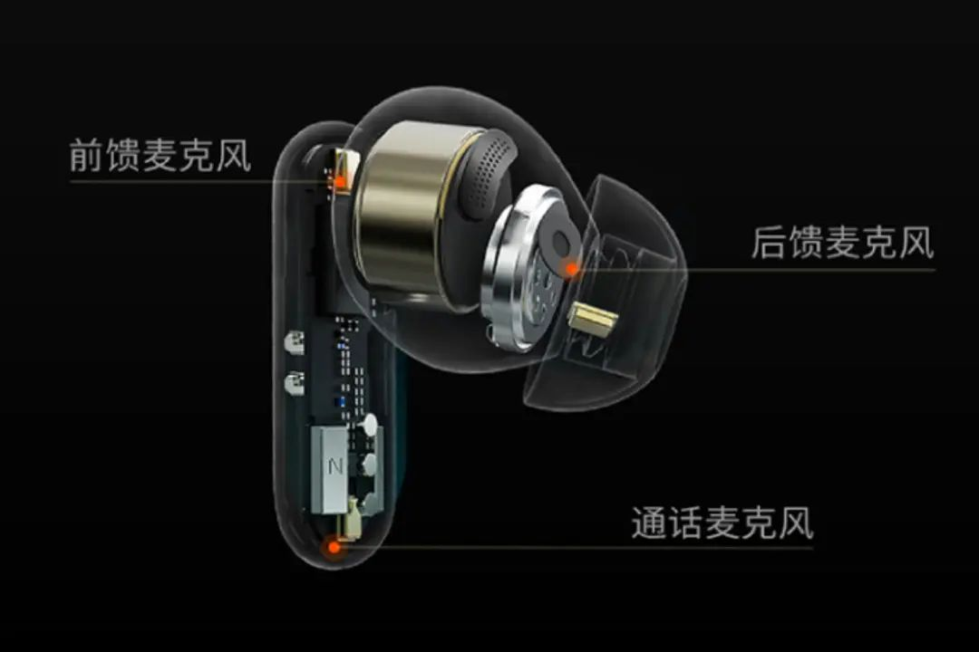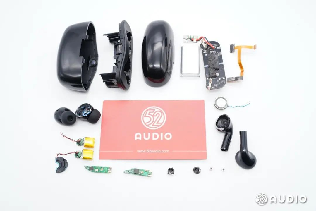 耳机内部采用了10mm动圈单元,单耳三颗MEMS麦克风进行通话和降噪功能拾音;内置微宙电子60mAh钢壳扣式电池,由赛微CW6305B充电芯片负责为内置电池充电。主控芯片为恒玄BES2500YP超低功耗蓝牙音频SoC,支持蓝牙5.2,集成自适应ANC主动降噪,高保真音频DAC和ADC;汇顶科技GH610电容式入耳检测及触控2合1芯片用于入耳检测和耳机的各项功能控制。