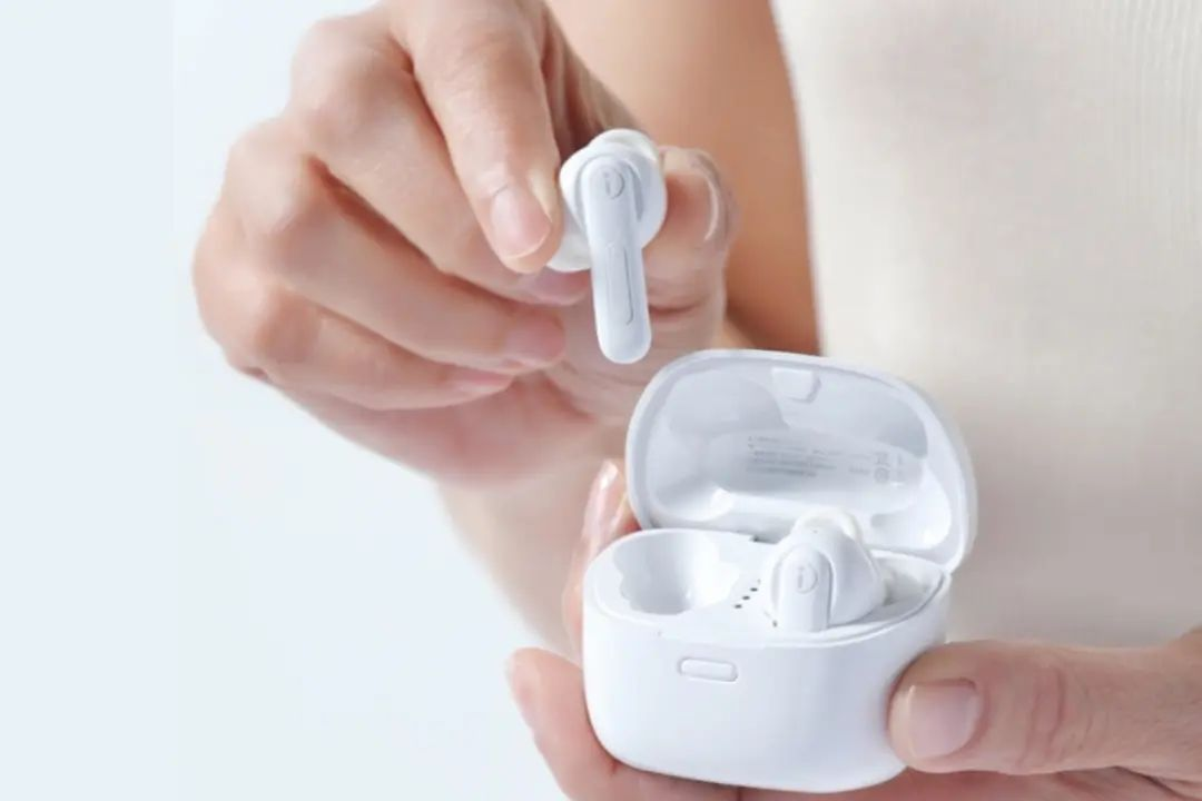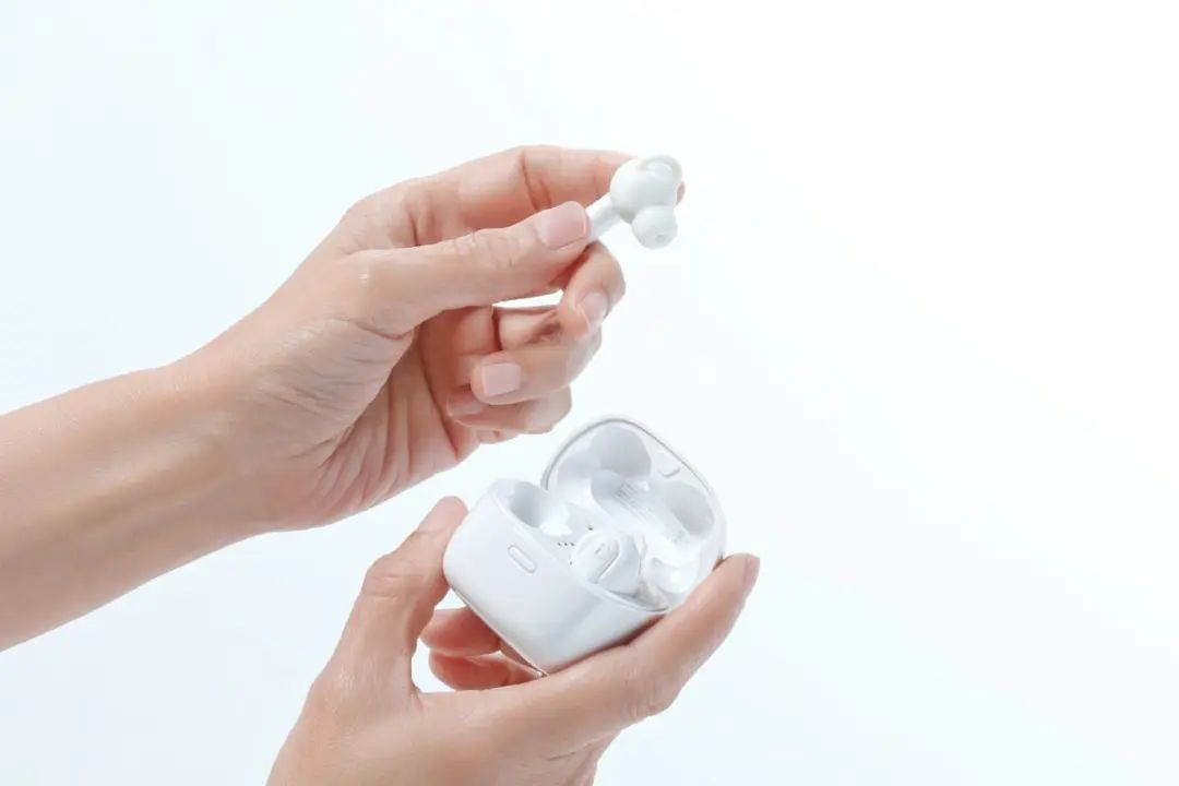 外观方面,讯飞智能助听器打破了传统助听器标志性的外观,采用时下流行的TWS耳机造型,依据人体工程学进行设计,佩戴更贴合人耳。