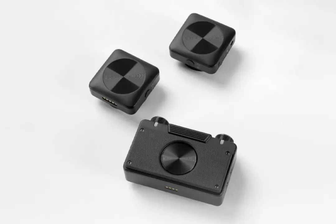 麦克风为一拖二设计,外观上均采用了方正的外形,发射器体积小巧轻便,支持衣夹和磁吸两种方式固定;接收器体积相对更大,但同样设计有背夹,用于与相机等拍摄设备固定。