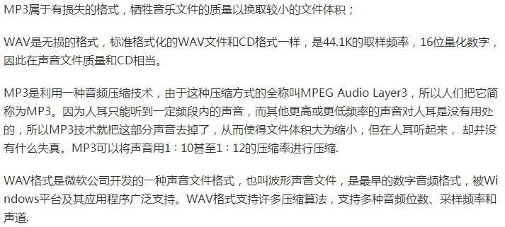 MP3和WAV格式的对比