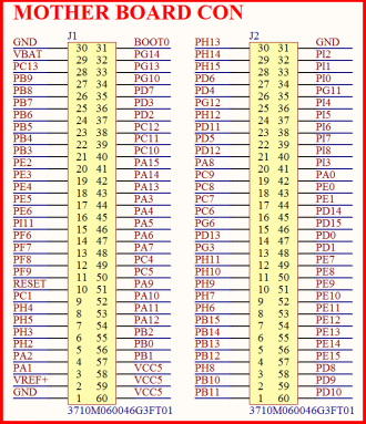 图中的 M1 就是底板上的核心板接口,由 2 个 2*30PIN 的 3710F 板对板母座组成,总共引