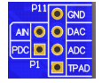 是在核心板流出的 3 个焊盘,可以给开发板供电,或者从开发板取电。