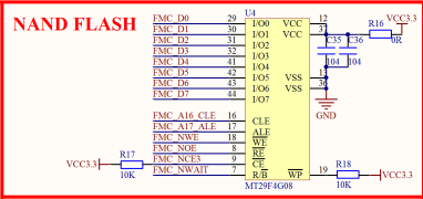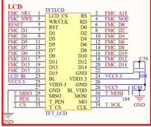 图中 TFT_LCD 是一个通用的液晶模块接口,采用 16 位 80 并口,也称作 MCU 屏接口,