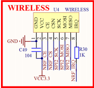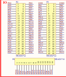 图中 P2、P3 和 P6 为 MCU 主 IO 引出口,这三组排针共引出了 102 个 IO 口,另外,通过: