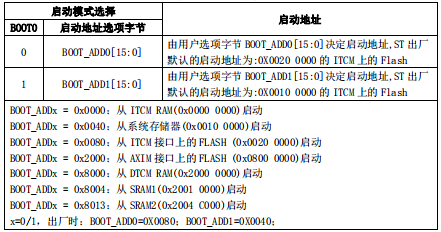 按照表 2. 1.8.1,一般情况下我们设置 B00T0 为低电平即可,默认情况下系统通过 ITCM 总
