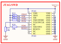 特别提醒,JTAG 有几个信号线用来接其他外设了,但是 SWD 是完全没有接任何其他外设