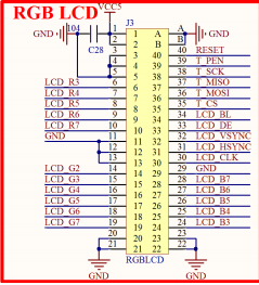 用一个复位电路。特别注意: 该接口核心板上的 RGBLCD(RGB 屏)接口,共用触摸屏和背
