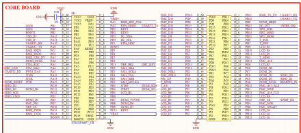 座)板对板连接器来同核心板连接,接插非常方便,底板上面的核心板接口原理图如图 2.1.1.1