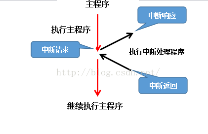 使CPU中断的事件称中断源。中断源向CPU发出中断请求,CPU暂时中断原来执行的事件A转去做事件B。事件B处理完毕后继续返回原先中断的地方(该过程称中断返回,原先中断的地方为断点),继续执行原先的事件。