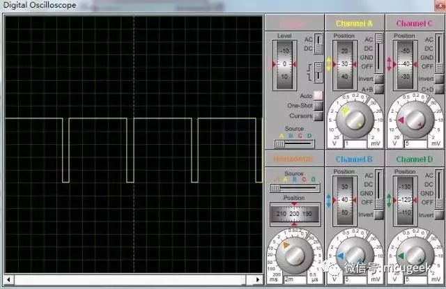 可见,用这种延时函数的方法就能简单地模拟出pwm输出。但是这种方法的缺点也相当明显。当程序除了要输出pwm波还要执行其他操作比如键盘扫描、显示等操作时,需要占用CPU一定的机器周期,这样就会影响pwm的准确度。现在很少会用到这种方法,接下来要介绍的是比较常用的方法。