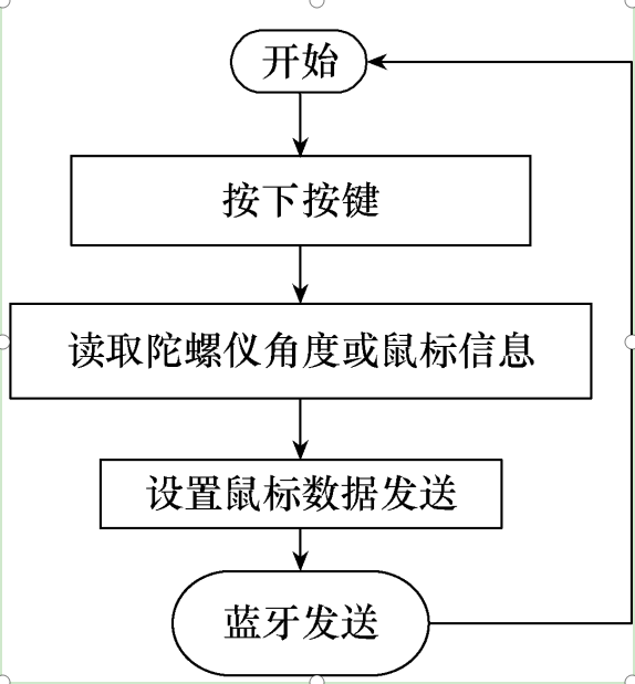 主控板电路如图1所示。STC15在此作为主控芯片,与陀螺仪和按键相连,轮询按钮被按下的情况。当按钮被按下时,将信号通过蓝牙发送给USB接收板,并且以固定的频率将陀螺仪的速度数据发送至USB接收板。