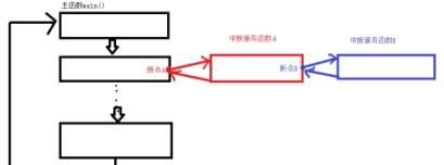 正常运行的程序是主函数(main),代码是由CPU运行的。CPU在主函数里运行是正常的执行过程,当在这个过程中忽然发生了异常事件(中断),CPU必需暂停当前的工作(设下断点),其次跑去能处理这个异常事件的函数中做异常处理(中断效劳函数),处理完这个异常事件后(执行完中断效劳函数),CPU就会跑回刚刚的断点处,继续正常运行下去。