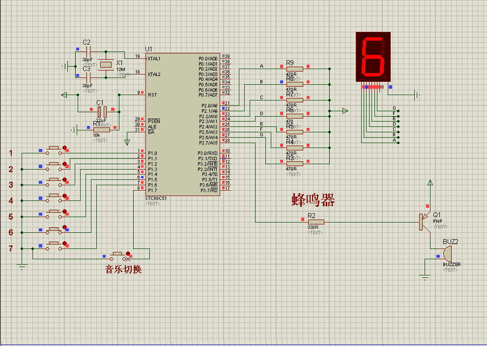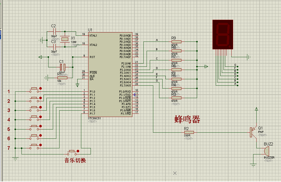 硬件组成:单片机最小系统+按键+蜂鸣器+数码管