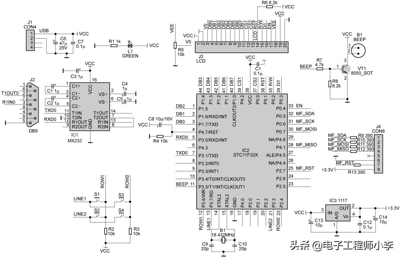 与PC的通信接口以及键盘、显示等部件主要实现与PC的通信,以及操作时的人机界面。
