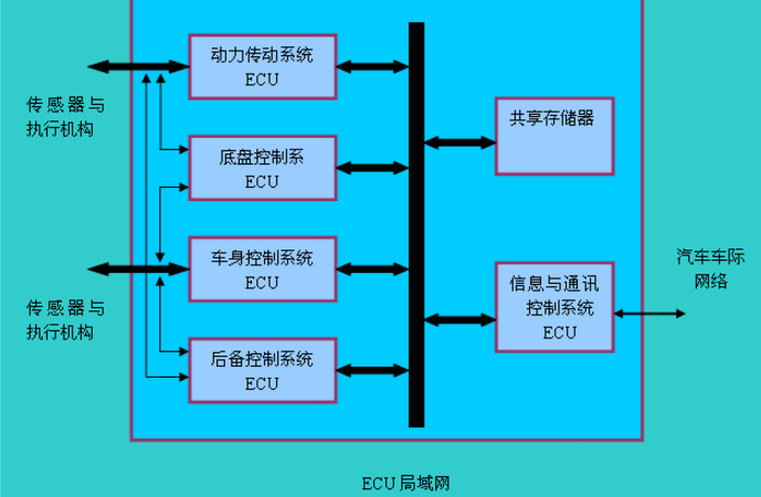 ECU原来指的是engine control unit,即发动机控制单元,特指电喷发动机的电子控制系统。但是随着汽车电子的迅速发展,ECU的定义也发生了巨大的变化,变成了electronic control unit即电子控制单元,泛指汽车上所有电子控制系统,可以是转向ECU,也可以是调速ECU,空调ECU等,而原来的发动机ECU有很多的公司称之为EMS,engine management system。随着汽车电子自动化程度的越来越高,汽车零部件中也出现了越来越多的ECU参与其中,线路之间复杂程度也急剧增加。为了使电路简单化,精细化,小型化,汽车电子中引进了CAN总线来解决这个问题。因为CAN总线能将车辆上多个ECU之间的信息传递形成一个局域网络。有效的解决线路信息传递所带来的复杂化问题。ECU的出现