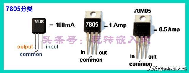7805三端稳压器应用较多的主要有三种型号,分别是7805,78M05,78L05,他们主要在输出电流上存在较大区别。
