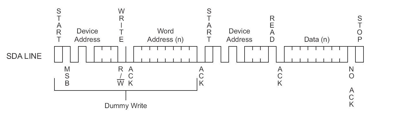 主机访问EEPROM时,主机在向EEPROM发送完控制字节和地址信息后,紧接着向EEPROM存储器发送起始条件和控制信号并发送读标志位信号,切换数据的收发方向。接着在收到EEPROM的响应信号后便可以读出需要的数据了。