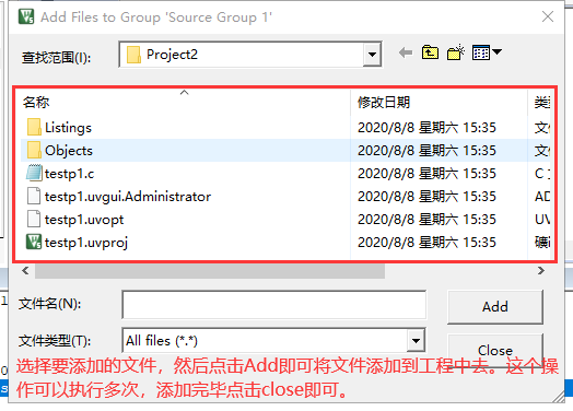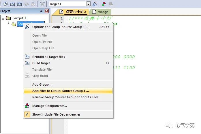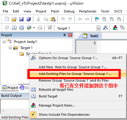 右键单击项目界面如图所示位置可以将写好的文件添加到工程中。