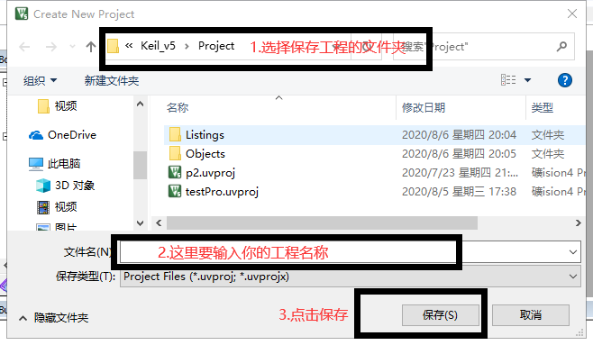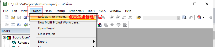 2. 打开keil后,新建一个工程,工程名可以自己根据工程的信息来取,但建议不要取中文名称(中文名称可能导致软件不理解进而出错)。