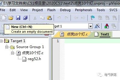 点第二行第一个白纸,在工程中,新建一个空白程序,点亮小灯那个是之前我的旧程序,不用理会。