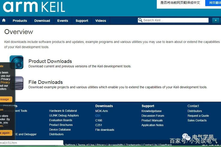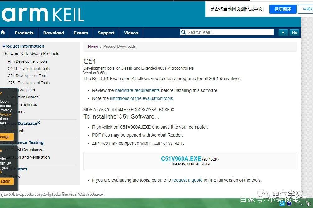 要想使用,首先是下载软件,个人推荐大家前往Keil官网下载。官网的软件各方面都有保证,英文并不影响使用,因为我们能用的功能项目,位置就那几个,记住就好了,而且不用担心莫名其妙的问题。