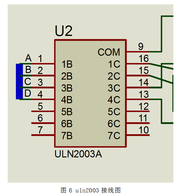 ULN2003是大电流驱动阵列,多用于单片机、智能仪表、PLC、数字量输出卡等控制电路中。可直接驱动继电器等负载。所以足以满足驱动步进电机的要求,连接图如下: