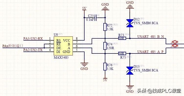 RS-485采用平衡发送和差分接收,因此具有抑制共模干扰的能力。