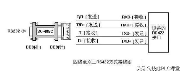 RS-422有4根信号线:两根发送、两根接收和一根地线。全双工通信。